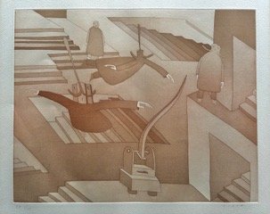 Jean-Michel Folon (1934-2005) fut un artiste polymorphe : aquarelliste, dessinateur, peintre, sculpteur, photographe, graveur, décorateur de théâtre, créateur de vitraux, cinéaste d'animation... Son dessin minimaliste (quelques lignes, une tête... définissant un personnage) rehaussé par un jeu de couleurs lumineuses est immédiatement reconnaissable. Pour ceux qui ont connu la vieille télévision, il restera à tout jamais le créateur des somptueux génériques d'ouverture et de fermeture des programmes d'Antenne 2. Une petit vidéo souvenir ci-après vous attend ainsi qu'une bibliographie pour en savoir plus sur l'univers poétique de ce grand artiste.